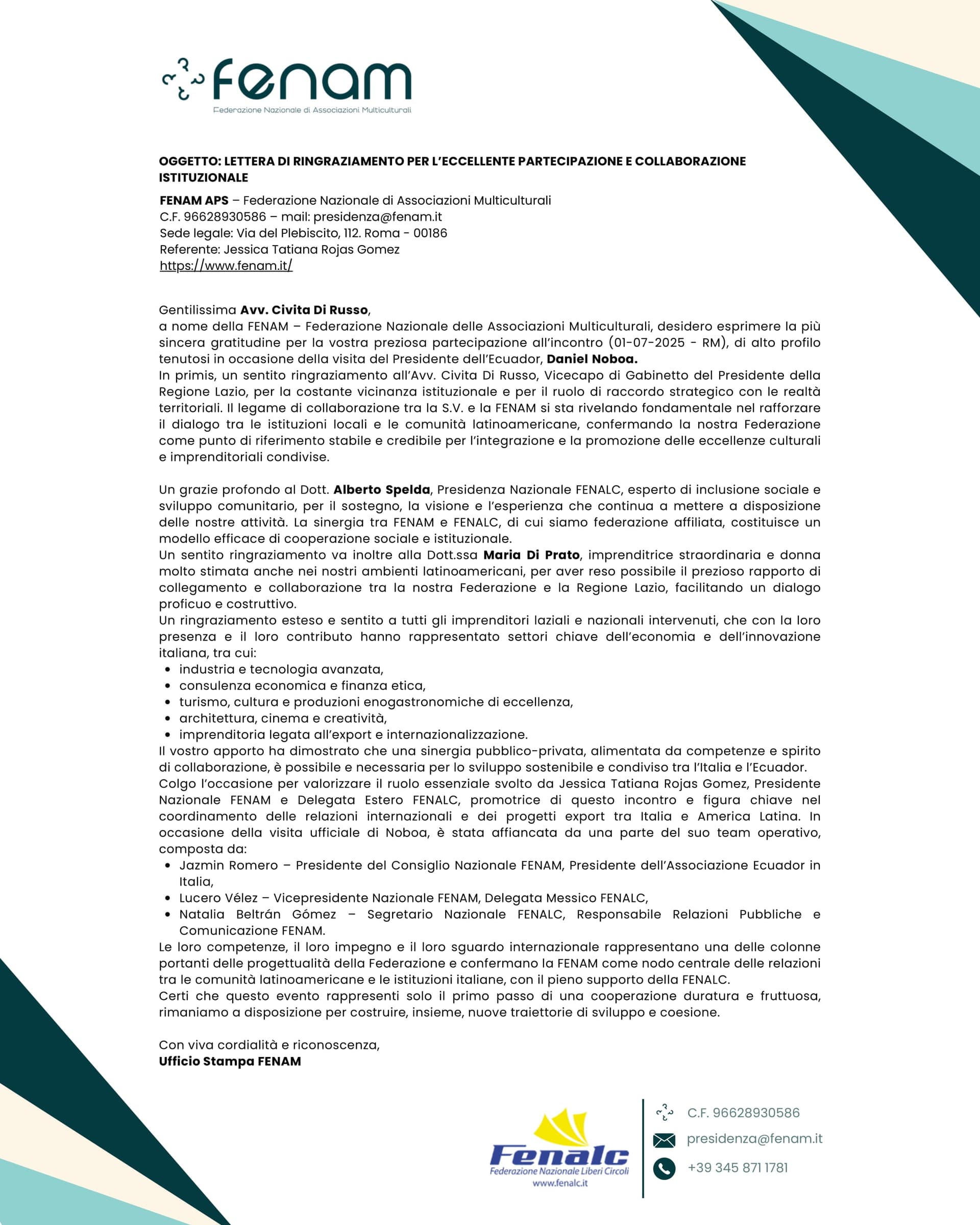“In FENAM, siamo convinti che il potenziamento individuale sia fondamentale per stimolare la crescita economica e sociale. Insieme, possiamo costruire un ambiente in cui ogni cultura contribuisce a un ecosistema dinamico e prospero, creando opportunità concrete per tutti.”